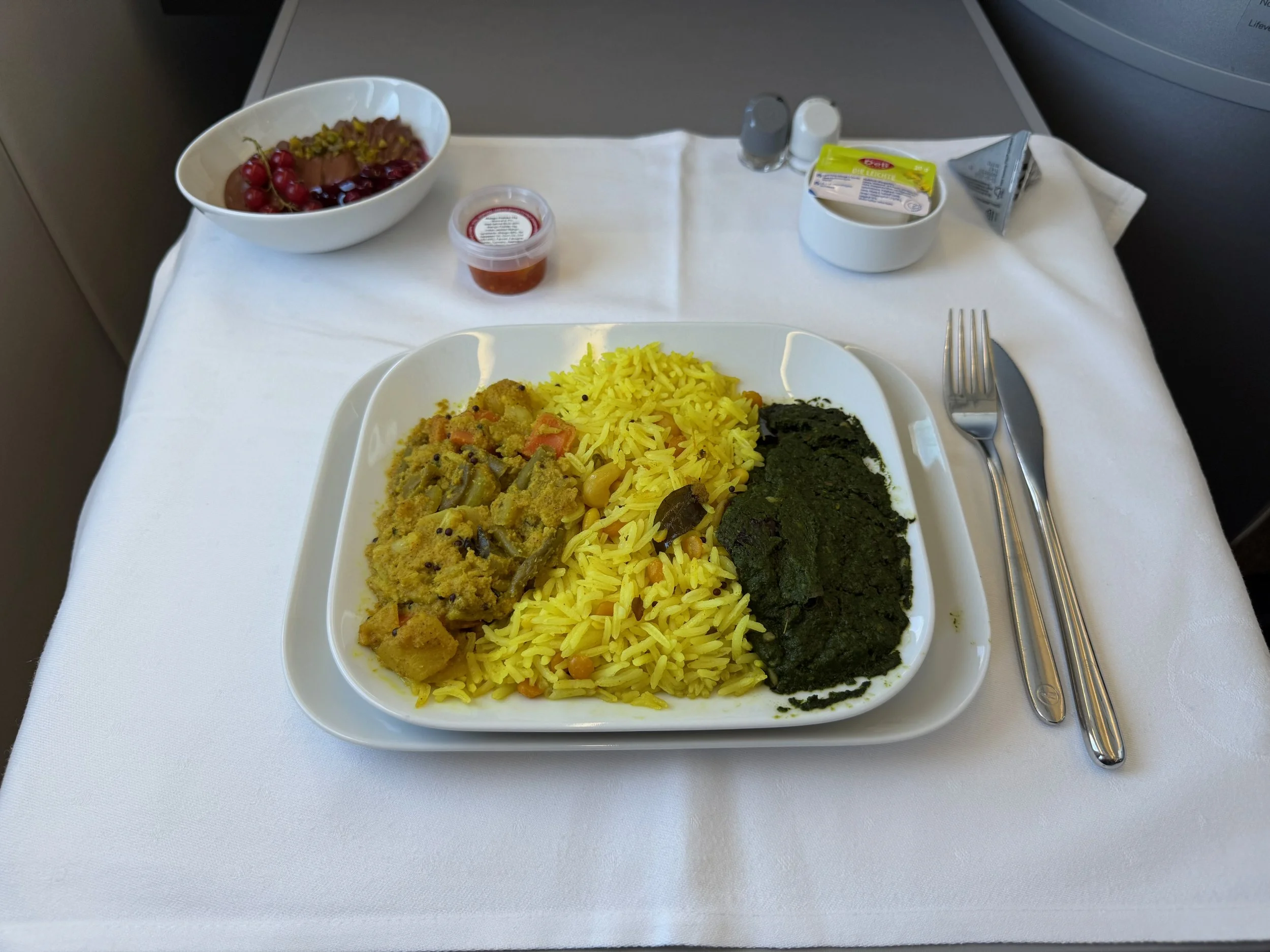 The food situation took an interesting turn when I realize Oscar got a different main course than I did. So there seems to have been a catering mix up and to cut a very long story short, there was another passenger, who had also ordered a vegetarian special meal, not vegan.
