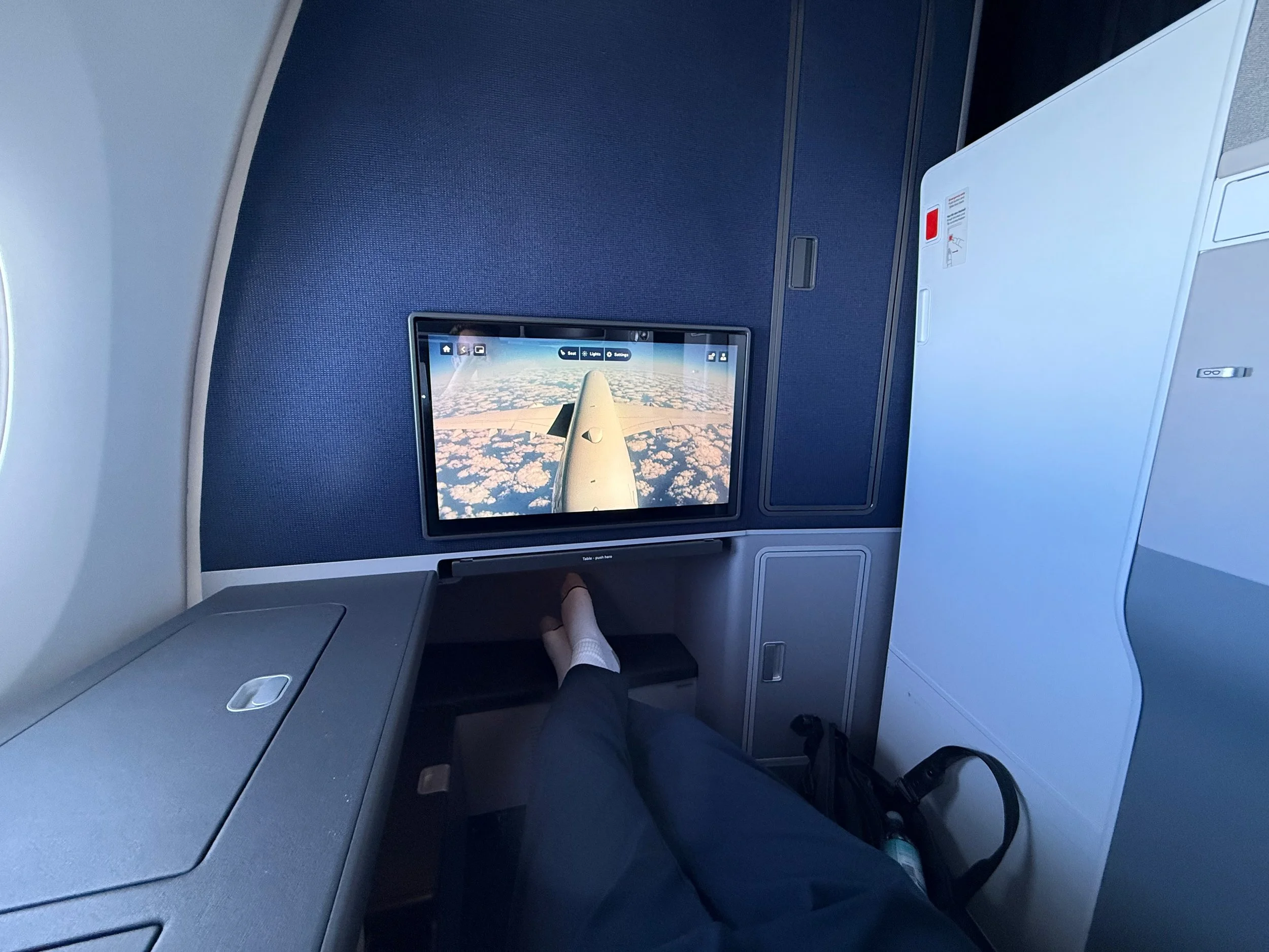 So does the firmness adjustment, another great feature. Sadly, most of the other seat controls on the tablet do not work. You simply can't press them and the crew tells me it doesn't work yet.